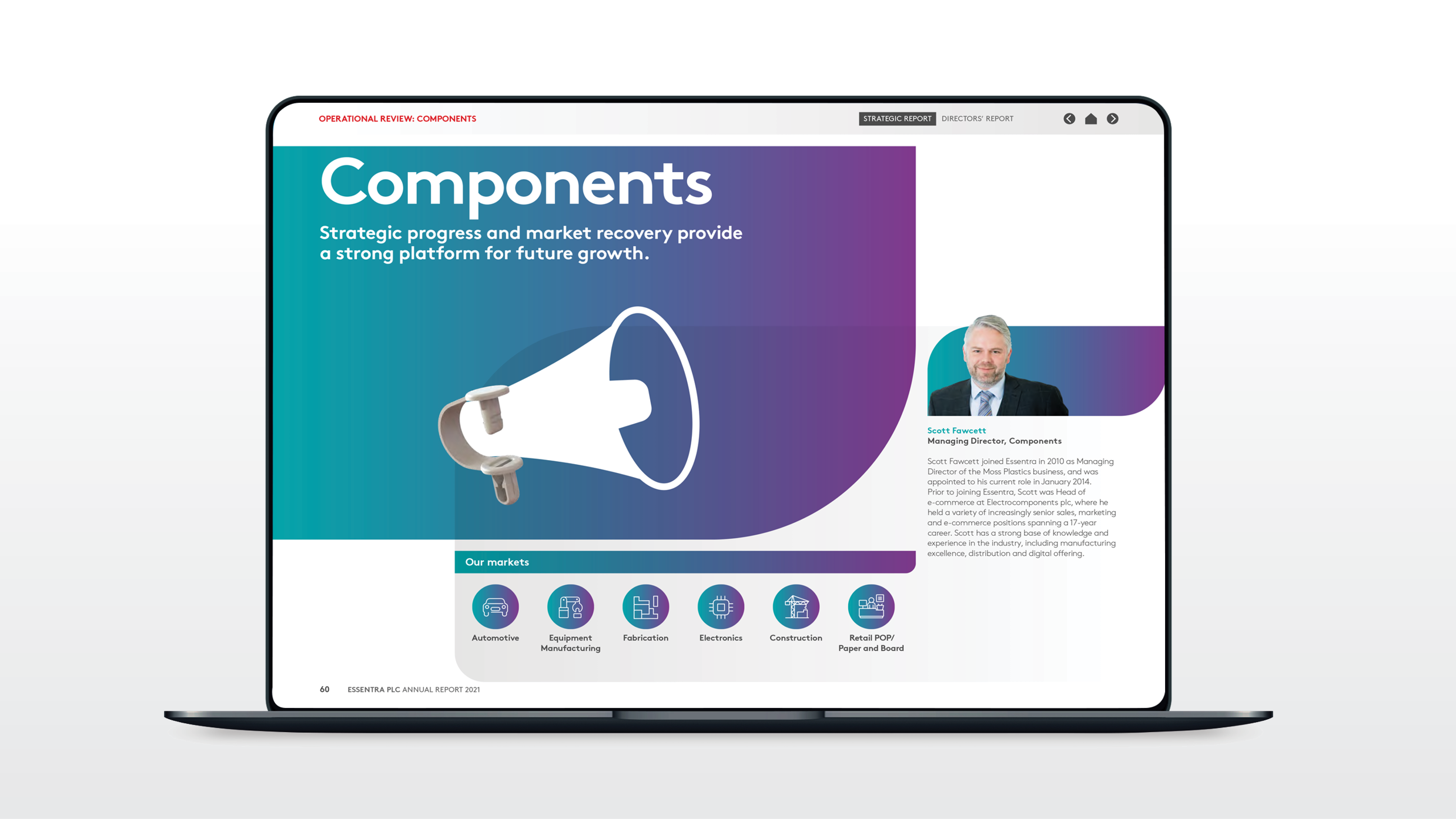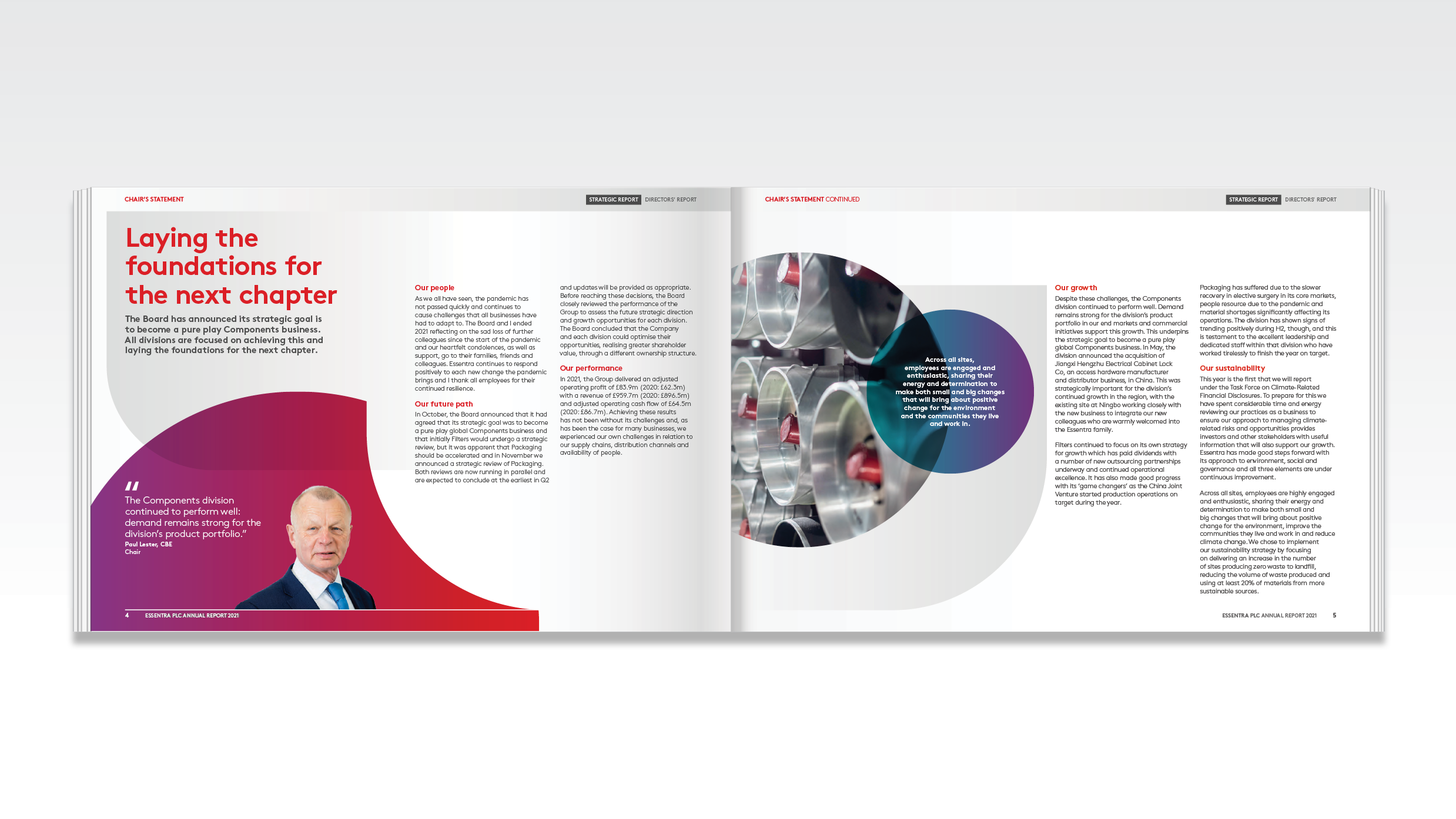 After Essentra announced its new strategic goal in 2022 – Essentra used their 2023 report to clarify their position in their first year as a pure components business with a fresher visual look and feel across the report.