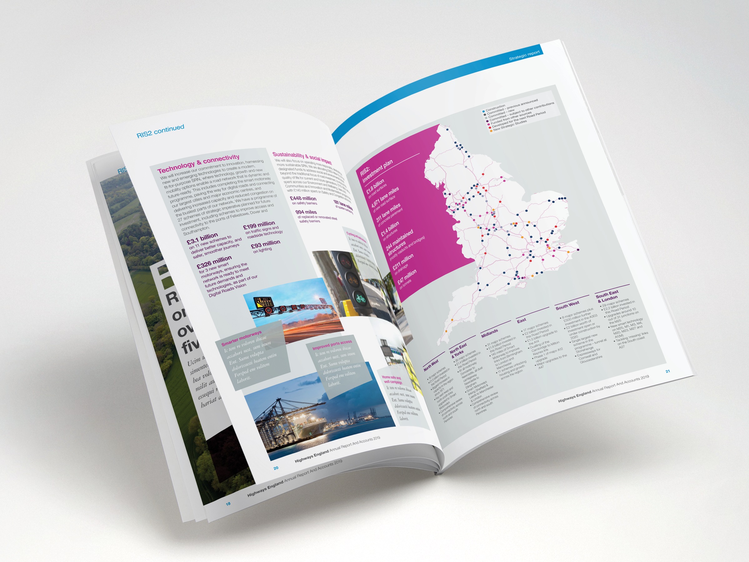 Highways England creative must demonstrate the confidence, personality and culture of the organisation and needs to reflect the energy of Highways through colour, data, infographics and imagery.